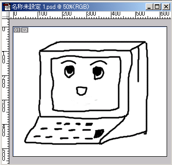 ・[イメージ]−[色調補正]−[明るさ・コントラスト]でコントラストをかけ白黒をはっきりさせます。そして BMP(ビットマップ)形式で保存する。