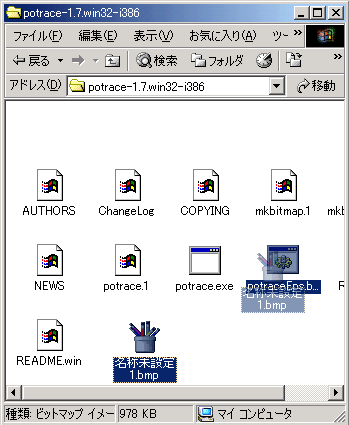 からソフトをダウンロード(Win32bit版/potrace-1.7.win32-i386.zip)。