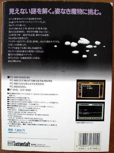 テキストアドベンチャーゲームの雄、ZORK Iです。