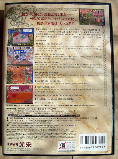 ◆筆者のレビュー なんと三国志シリーズもシリーズ4作目以降はプレイしていない。 なんか複雑そうだから。でもグラフィックはかなり綺麗になったね。どうなんだろう?Vこそ名作っていう人がいたら、書き込みしてみて。 評価不能っす(_ _。)