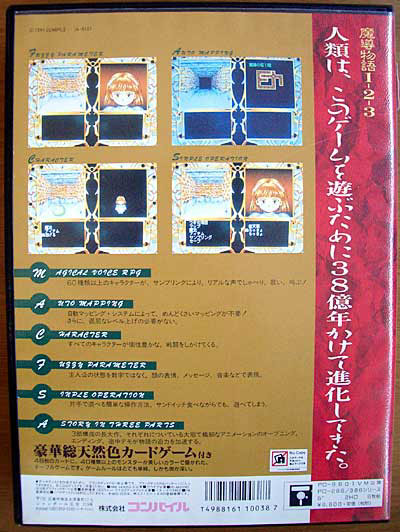 ◆筆者のレビュー 通称「98魔導」と呼ばれている。他機種に比べると、グラフィックがリアル。僕自身、他機種ではプレイしておりませんが。「『ぷよぷよ」の攻略本などで『魔導物語』が紹介された際には、この作品が紹介されることが多かった。 「ぷよぷよ上から落ちてきた」「ウィッチのおでまし」「ケリをみまった」「舌がムチのように伸びる」「心臓凍結」「かき消える」など、敵キャラごとに登場・攻撃・退場メッセージが異なるようになった。ほかにも、強力だが命中率の低い攻撃呪文「ジュゲム」、装備するとぺらぺら喋って持ち主の意思とは勝手に行動する杖「魔導杖」が初登場!!すばらしい〜9801版魔導物語〜。 この作品から主人公の女の子に「アルル・ナジャ」という名前が設定された。 評価不能っす(_ _。)